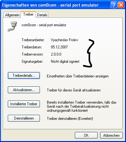 In first post of this topic you say that Com0Com serial port was detected, but without a driver detail information.